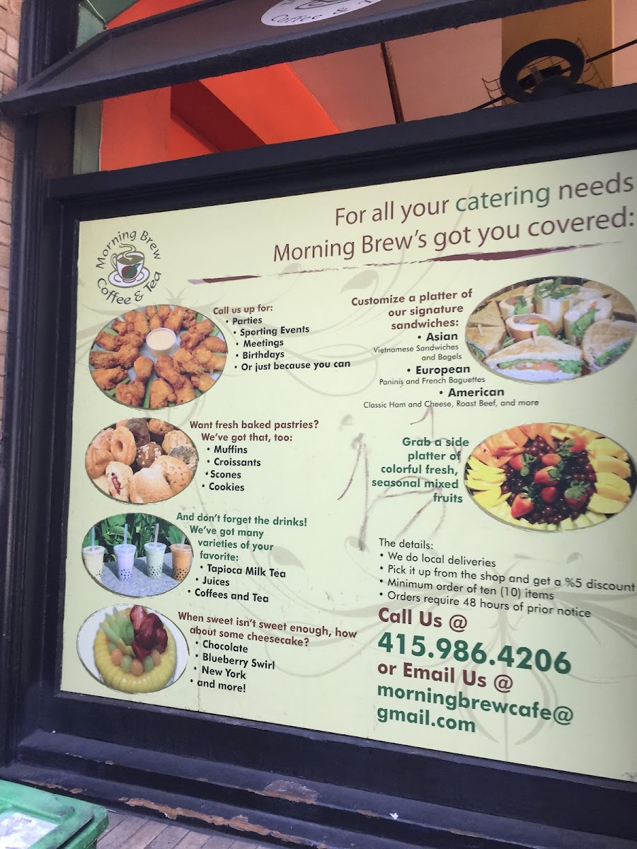 Welcome to Morning Brew Coffee & Tea, a charming cafe nestled in the heart of San Francisco. It’s a destination for coffee enthusiasts and tea lovers alike. Their menu showcases a dynamic range of freshly brewed coffee, including the rich Vietnamese coffee that has garnered rave reviews. Customers appreciate the well-balanced flavor profile that perfectly complements a variety of tastes.